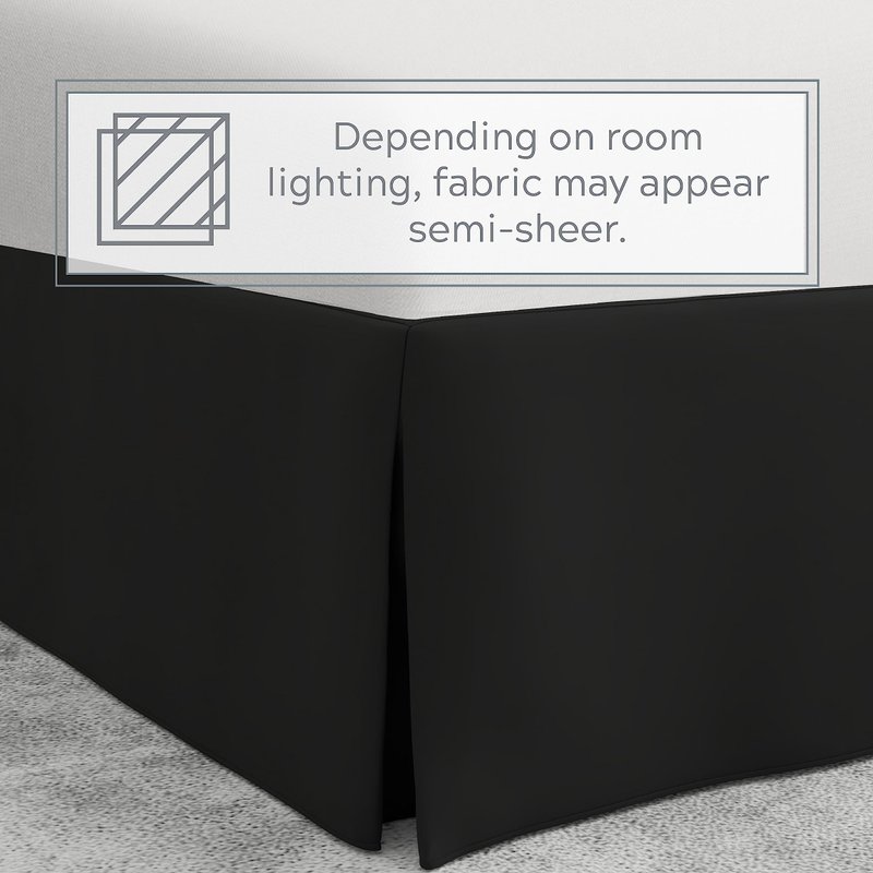 - Tailored Design: The contemporary design features 5 box pleats and 2 split corners, and easily coordinates with existing bedding. The 100% semi-sheer microfiber polyester fabric is machine washable, wrinkle-resistant, colorfast, and pre-shrunk.