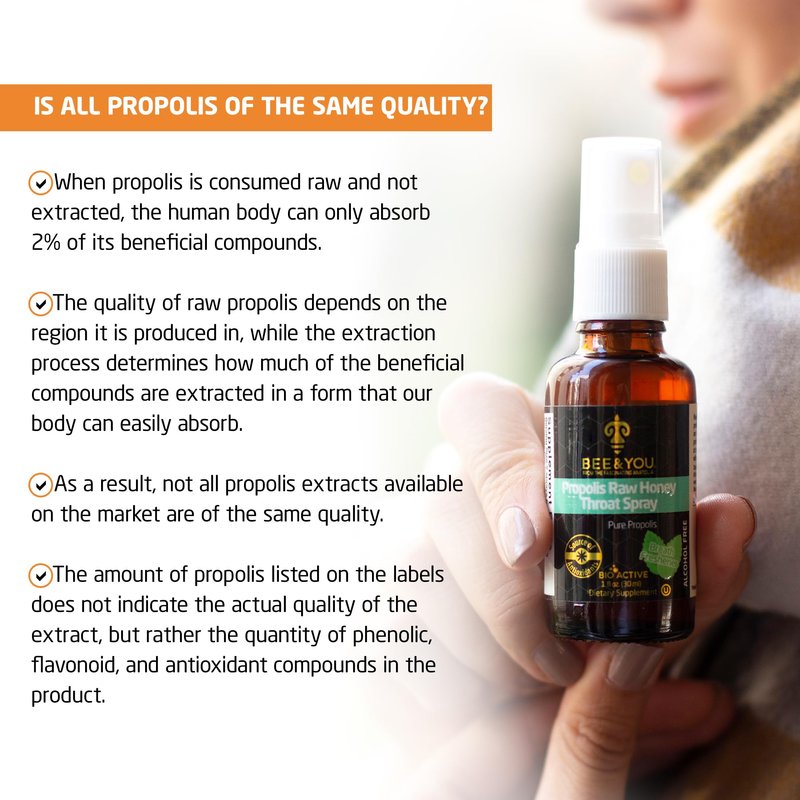 - High Quality & All-Pure: Our propolis has 3 times more antioxidants than the highest-grade Manuka Honey. Our product is 100% Natural, GMP, BRC, ISO 22000, ISO 9001, IFS and OU Kosher Certified. Contains NO: artificial preservatives, colors, refined sugar, gluten, wheat, yeast, corn, soy, dairy, egg.