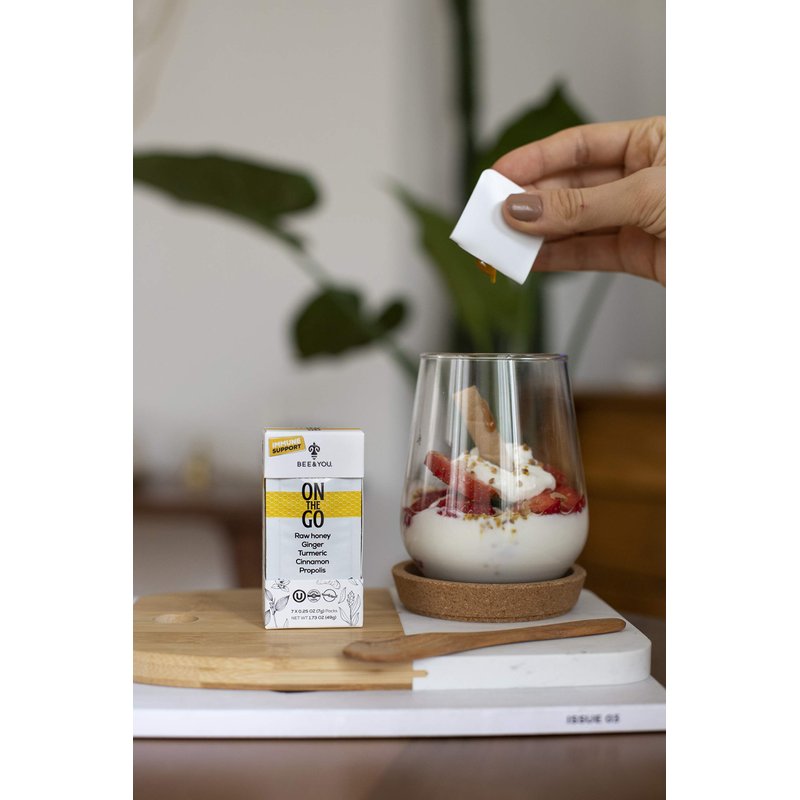 - With propolis, curcumin, ginger and raw honey, BEE&YOU On the Go is the best to keep you going while supporting your immunity. You can consume it easily with your favorite cold drink, food or directly into your mouth.