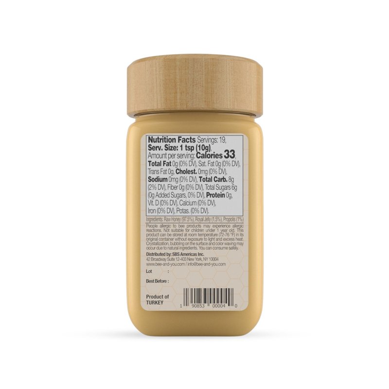 Bee and You Royal Jelly Raw Honey for Kids, Propolis Extract, 100% Natural Superfood, Ultra Pure, Immune Support Supplement, Antioxidants, Keto, Paleo, Gluten-Free, 6.7 oz