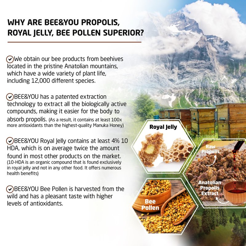 - HIGHEST GRADE ROYAL JELLY AND BEE PROPOLIS: This delicious and nutritious superfood is what your children need every day! Highest-grade royal jelly and bee propolis, sustainably harvested and mixed with raw honey to create a true bee superfood.