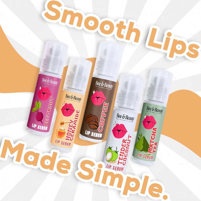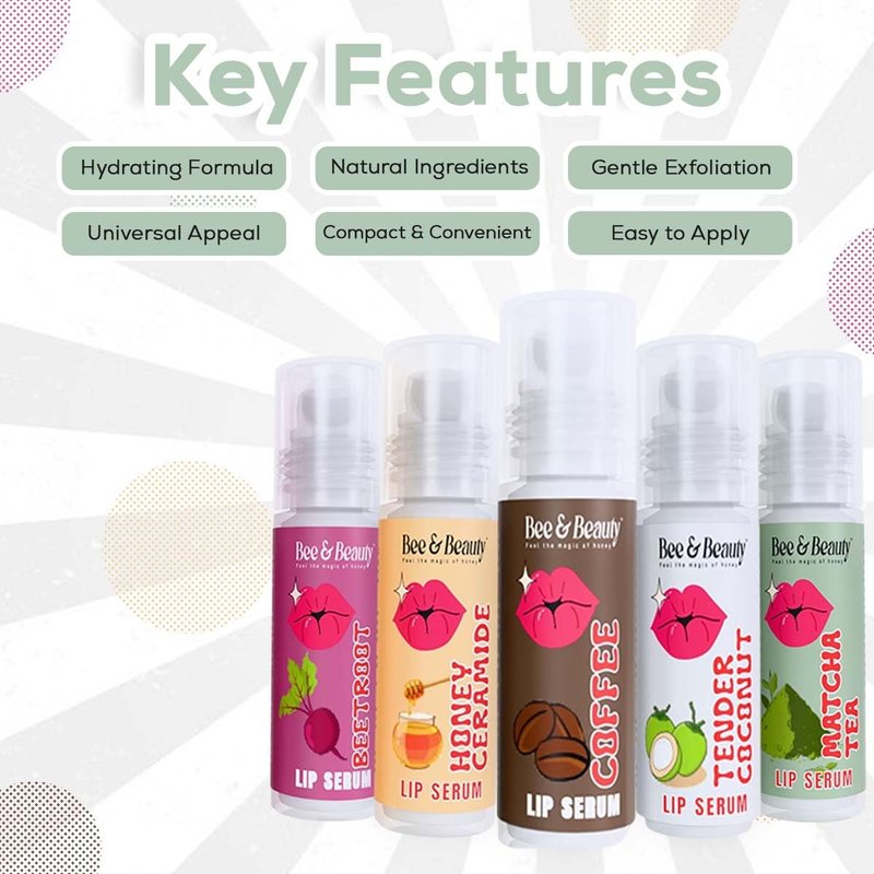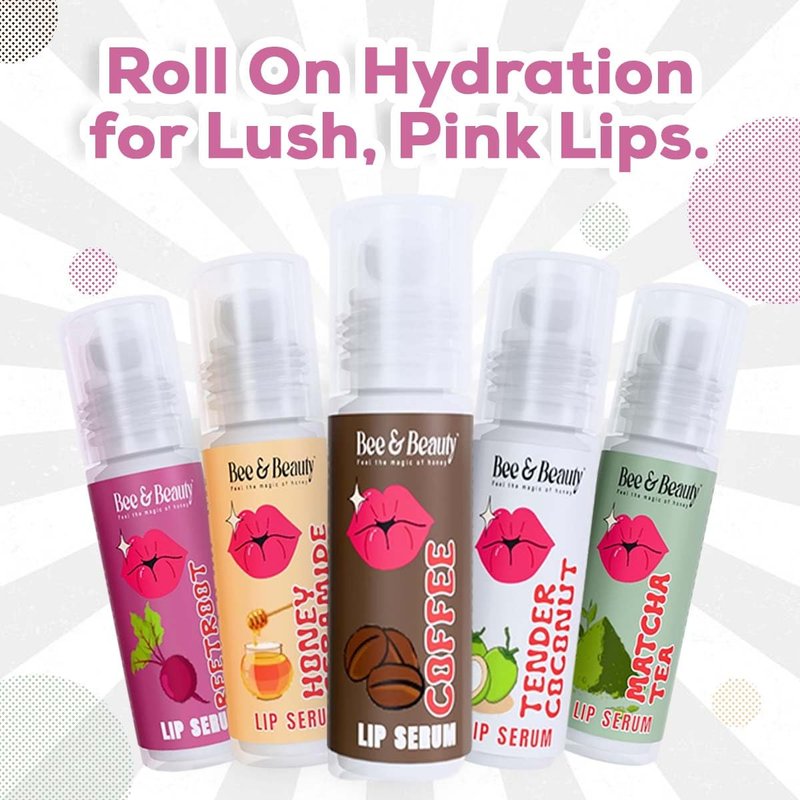 Bee & Beauty Moisturizing Lip Serum Roll On Combo - 5ml Each With Natural Flavours Nourishes, Hydrates and Gently Exfoliates For Men and Women Natural Pink Lip Roll On For Daily Lip Care