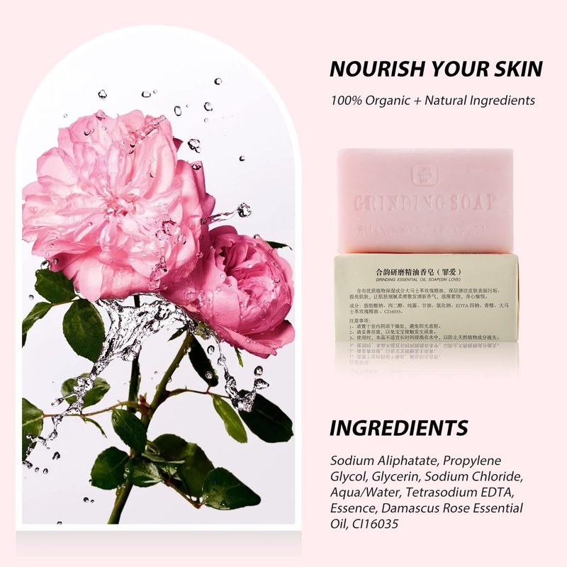 - Nourish Your Skin: Our grinding essential oil soap bars are made using natural, organic ingredients and amazing for your skin. It's good for soothing, moisturizing, & nourishing your skin, even helps reduce the signs of aging. The damascus rose essential oil boosts collagen production, leaves skin smooth and supple