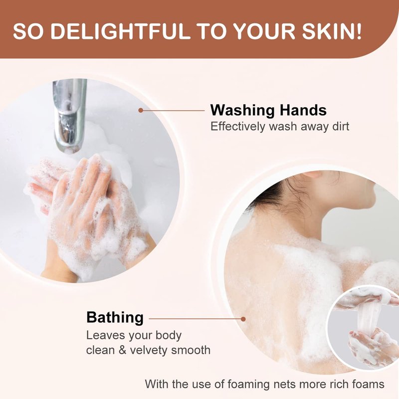 - Effectively wash away dirt when washing hands or bathing. This sandalwood bath soap leaves your body clean & velvety smooth, with the use of foaming nets more rich foams (foaming nets is not included). Compared with ordinary soap, the foam is more delicate and dense