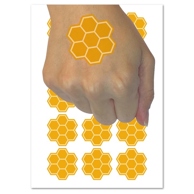 Bee Honeycomb Solid Temporary Tattoo Water Resistant Fake Body Art Set Collection - 54 1" Tattoos (1 Sheet)