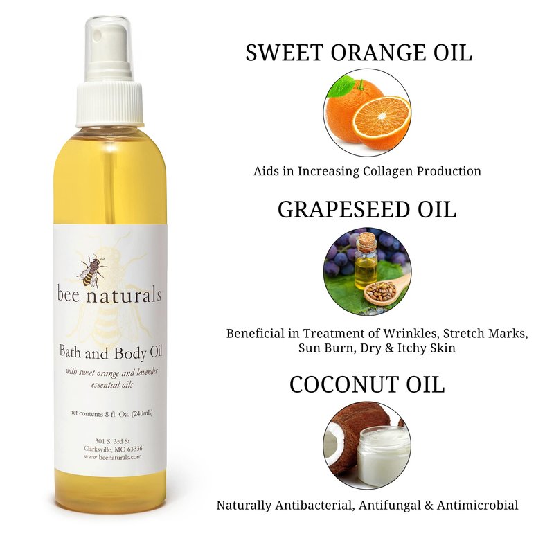 - ARTISAN MADE IN SMALL BATCH FORMULATION - Bee Naturals Bath & Body Oil Is Made With Only The Best Ingredients and is Artisan using a time tested formula - Made In Small Quantities To Ensure Quality and Freshness.