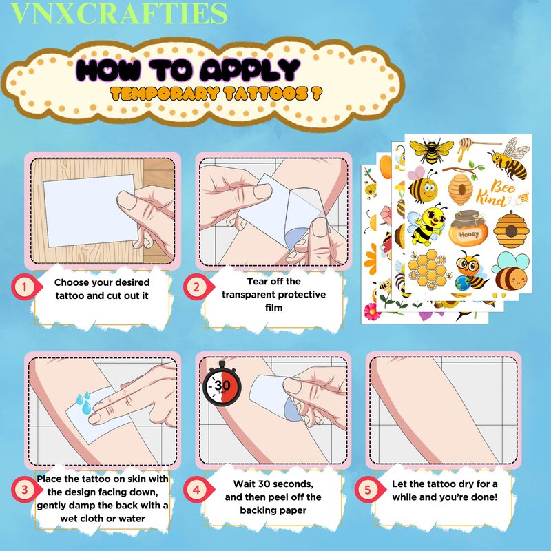 Brand: VNXCRAFTIES. Product: Temporary Tattoos. Theme: Bee Animal . Birthday Party Decorations, Party Favors.