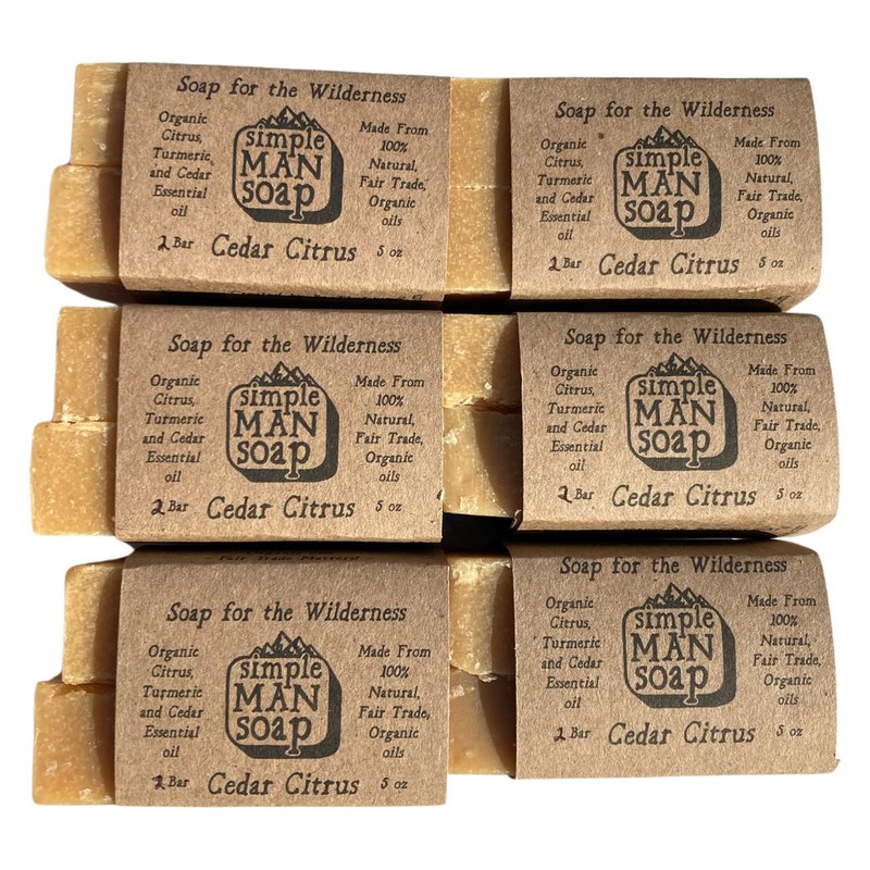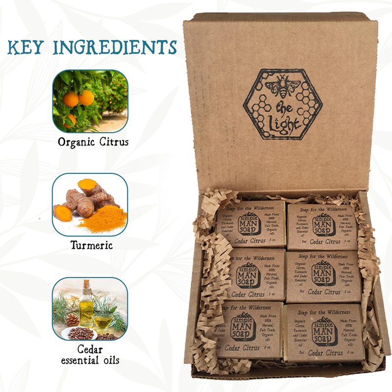 Bee The Light SimpleMan Soap Bar (Cedar Citrus) - Men’s soap with Organic & Fair Trade Essential Oils - All Natural, Handmade Man Bath Soap Bars-Pack of 12-2.5 Ounce bars(30 Ounces Total)