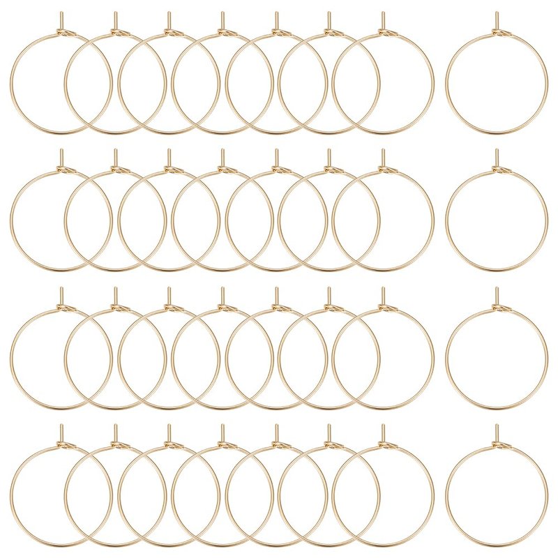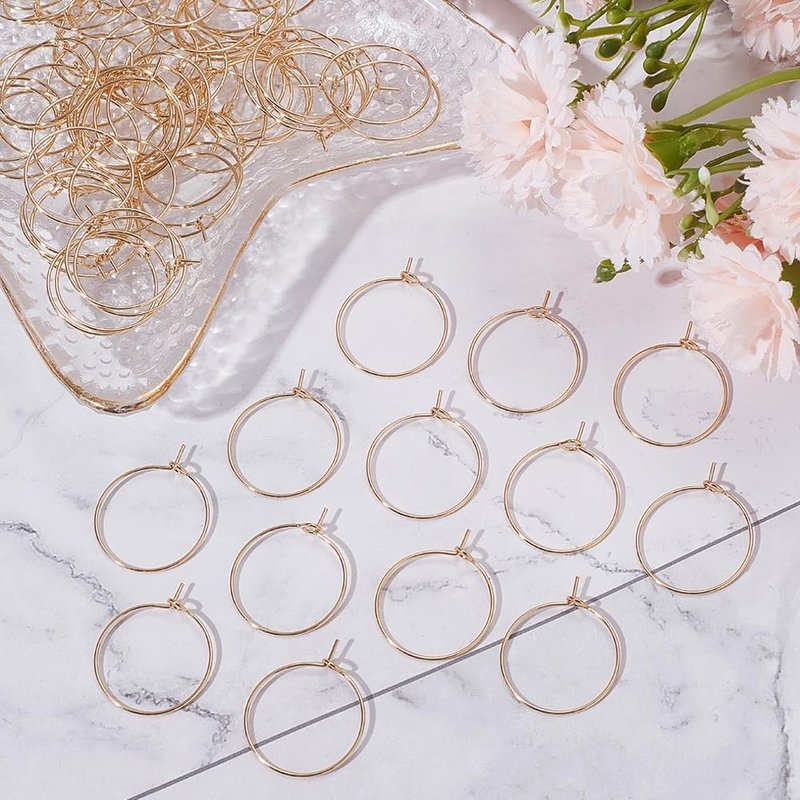 Beebeecraft 1 Box 100Pcs Hoop Earring Findings 18K Gold Plated 20mm Wine Glass Charms Rings with 0.7mm Pin DIY Earring Beading for Hoop Earrings Making