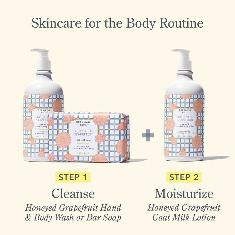 - BODY LOTION - Combining rich goat milk with hydrating botanical extracts, this lotion delivers long-lasting moisture and a farm-fresh glow without any fuss. Scented with guava and grapefruit.
