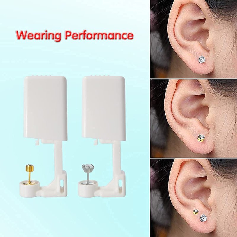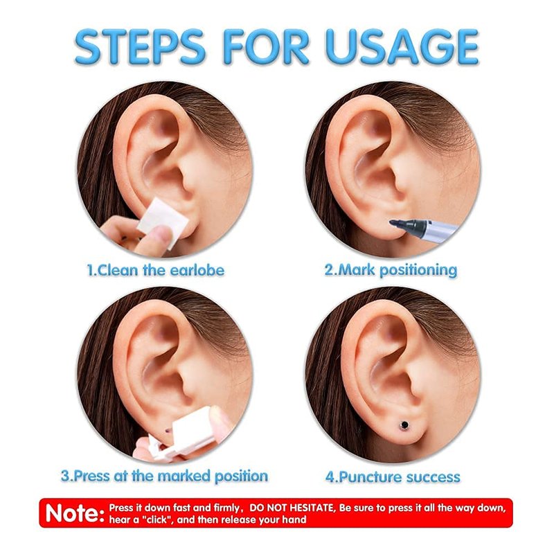 - 【EASY TO USE】Professional home use ear/nose piercing gun - Wash your hands - Open the package - Clean the earlobe/nose with the included clean pad - Mark the earlobe/nose - Aim at the target and press to finish.Super easy,quick and convenient