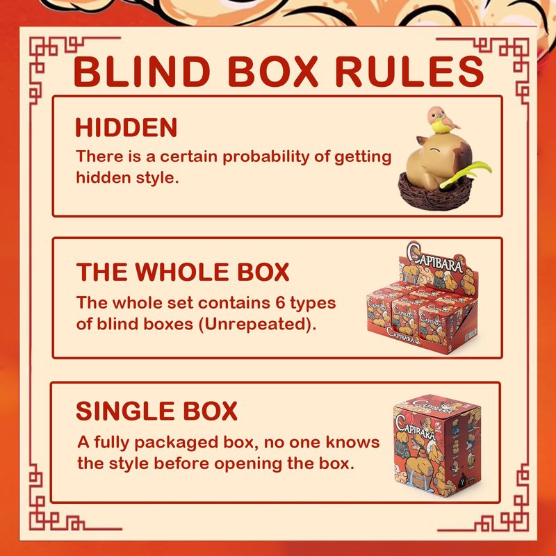 - 【CAUTION】It is Not toy for children!!! It is collectible Figures. This series has 6 regular figures and 1 hidden edition (Capybara in The Bird's Nest) to collect.