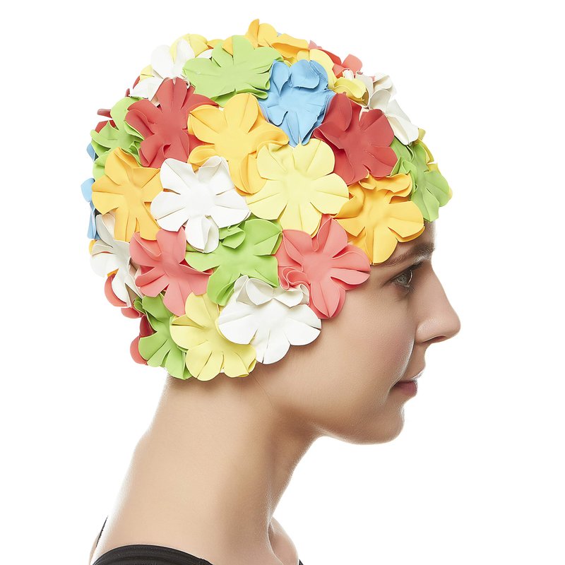 - SWIM CAP: The Beemo Women’s Latex Floral Petal Cap is constructed using soft and stretchy latex with a special rubber seal to protect ears from getting filled with water and defend your hair from damage.