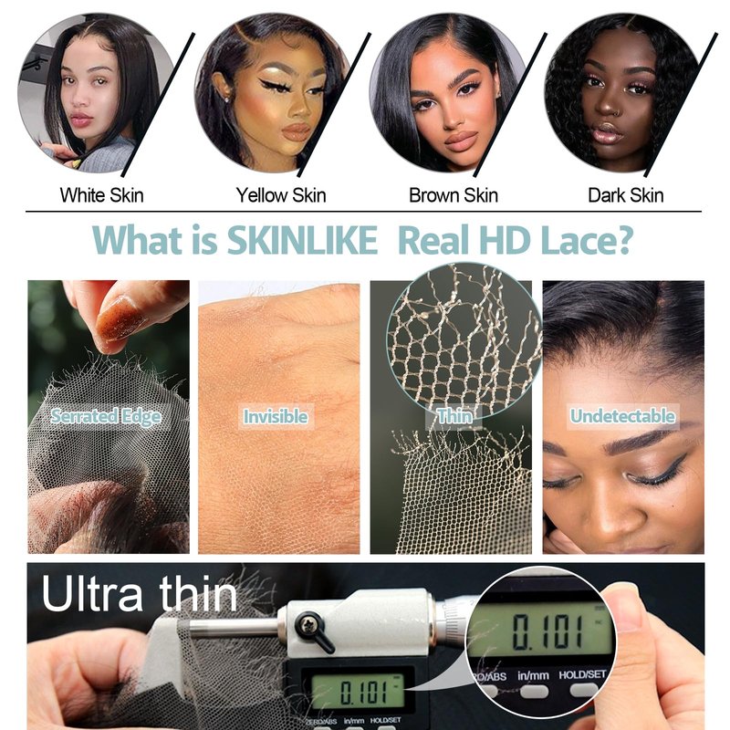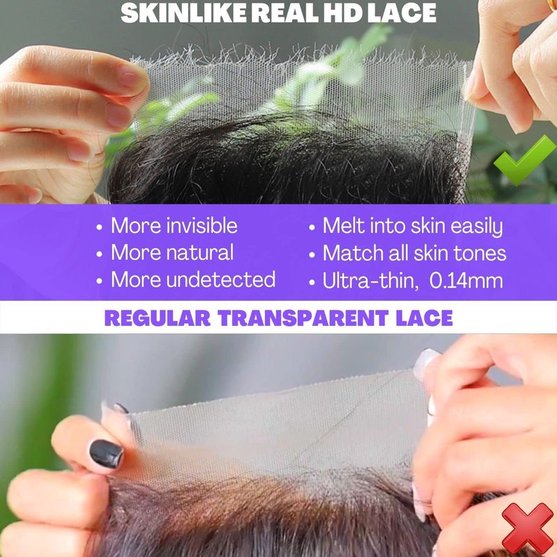 - 【SKINLIKE Real HD Lace vs Transparent Lace】Skinlike Real HD lace has the irregular edges, ultra-thin only 0.10mm. And the normal transparent lace has relatively neat edges, it's not invisible and not so natural like the real HD lace if you put it on your skin.