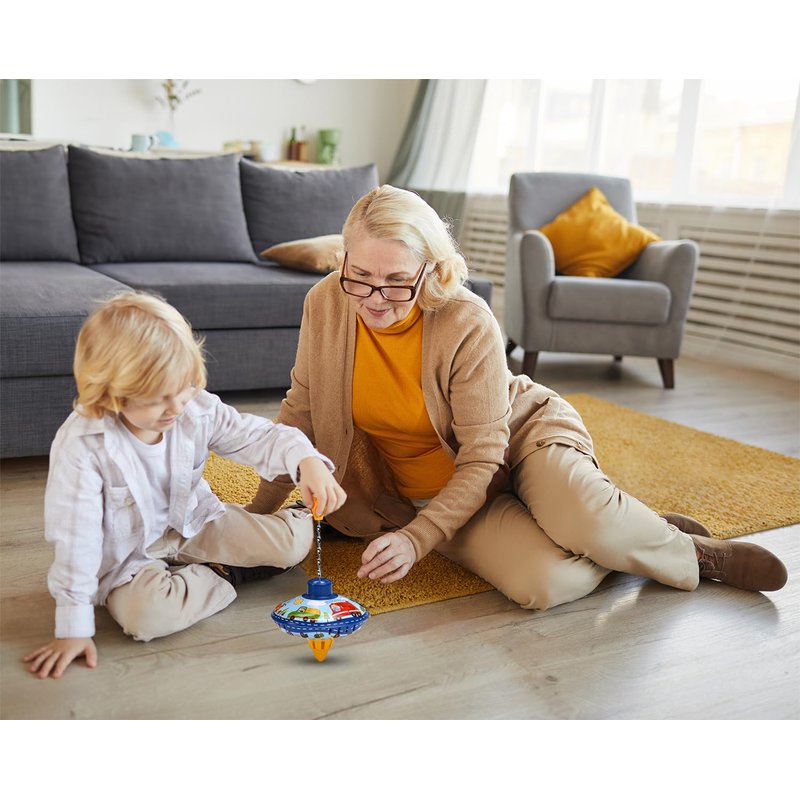 - Old-Fashioned Fun: Our classic tin top has been a hit for ages, loved by kids, parents, and even grandparents. Our top toy improved design with plastic handle and stand for greater safety, but it still spins just like the vintage ones. It's not just fun, it brings back happy memories too