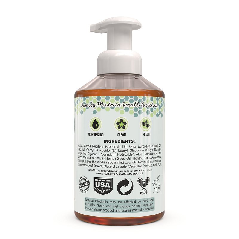 - Moisturizing coconut, olive, and hemp with hydrating aloe and honey softens hands