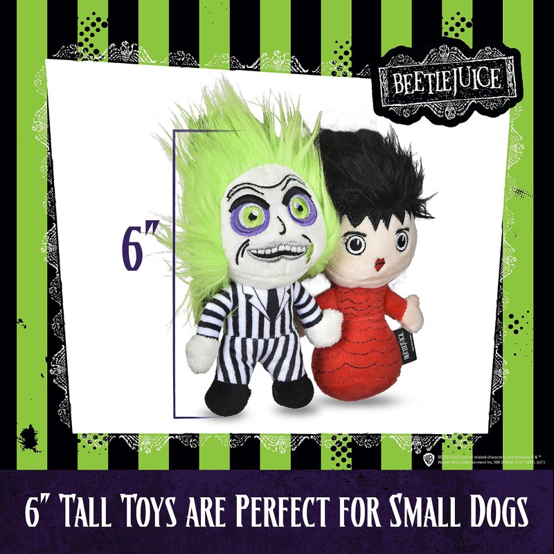 - DOG CHEW TOYS - Made from high quality plush fabric material, this Beetlejuice and Lydia squeaky dog toy set is a dog chew toy set that can be for all dogs
