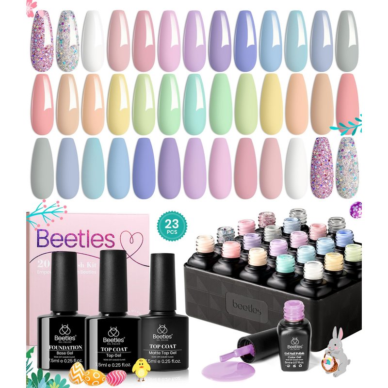 Beetles 23Pcs Pastel Gel Nail Polish Kit with 3Pcs Glossy & Matte Top Coat and Base Coat, Spring Paradise Pink Blue Girl Bright Solid Sparkle Glitters Uv Easter Gel Polish Easter in Dreamland