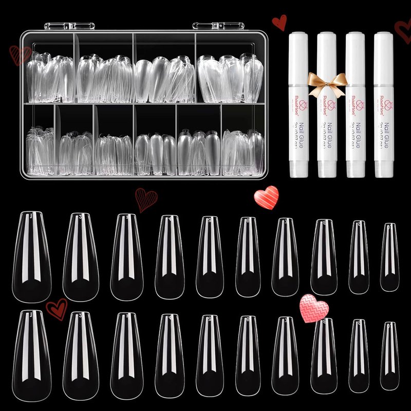 Beetles Acrylic Nails Kit 500Pcs Long Coffin Pre-Shaped Clear Full Cover Soft False Nails with Nail Glue, Nail Tips Soak Off Easy Nail Extension Set for DIY Nails Art Home Gift for Women