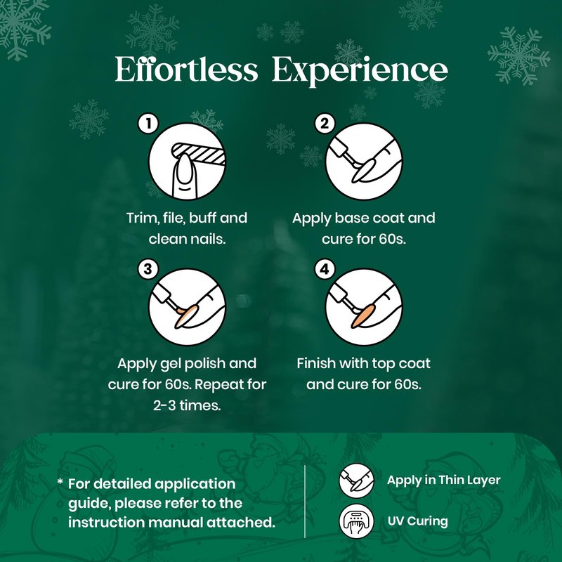 - Easy Application and Good Tenacity: The series of dark forest green glitter gel nail polish set is long lasting for 28+ days with perfect shine under proper application - With base gel top coat under the full application Process.