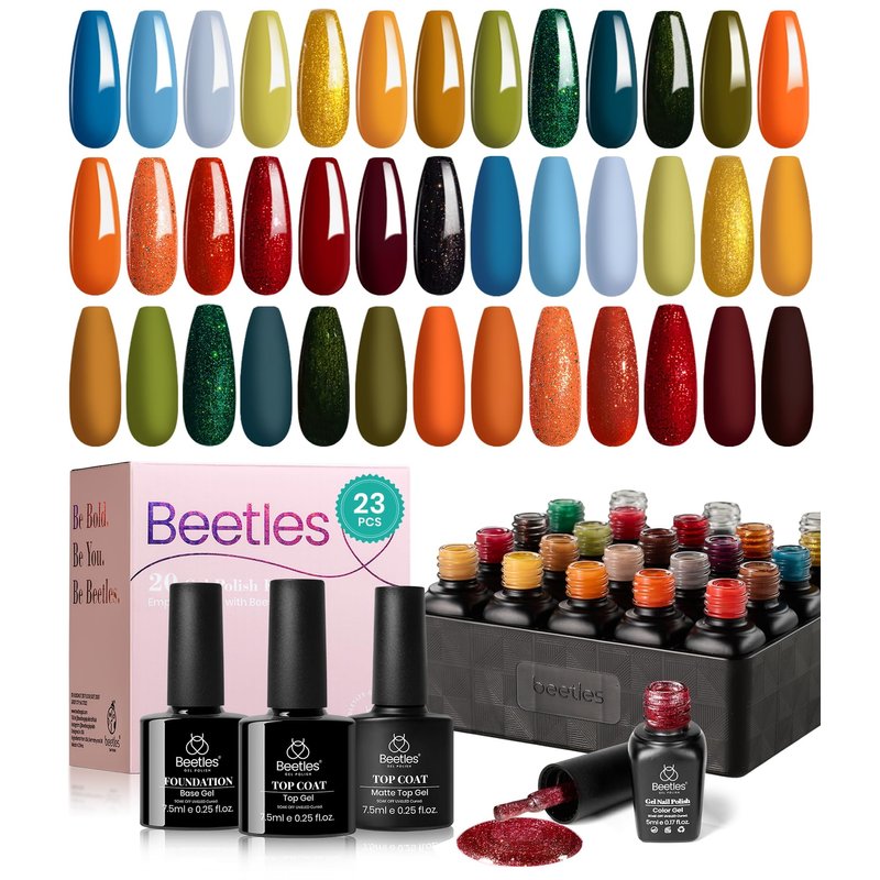 - Ideal Gift for Her: Beetles nail gel polish kit comes in a beautiful gift box. They are appropriate for any holiday or special event, such as a birthday, holiday, anniversary gift set. No more struggling to decide which colors to select. Glam and glitter nail designs can be freely finished with these vibrant color gels.