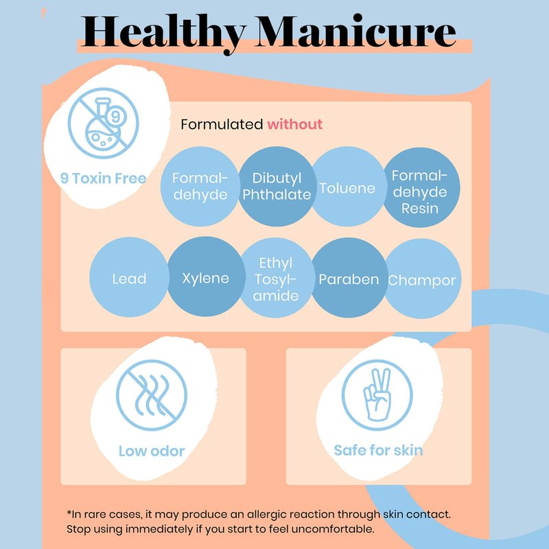 - Environmental & Healthy: 9 Toxin Free Ingredient makes it healthy and low odor. No harsh ingredients or adhesives that lead to damaged nails.