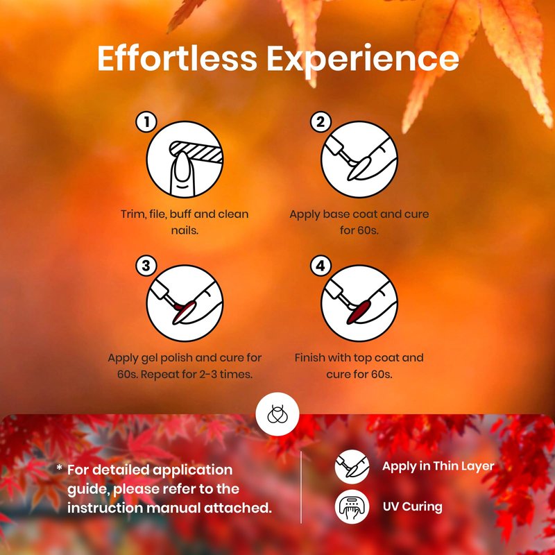 - Easy Application and Good Tenacity: Beetles cat eyes fall gel polish kit is long-lasting for 28+ days with perfect shine under proper application - with a base gel top coat under the full application process and needs to be cured under LED/UV light for 60-120 seconds.