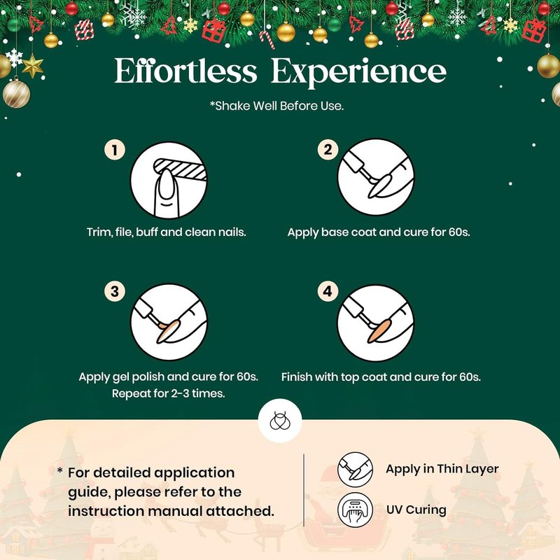 - Speed Curing with UV LED Nail Lamp:The nail gel polish gift set need to be cured under LED Dryer Lamp. Base and Top coat required. Average for LED Lamp 60-120 secs. This item does not include base&top coat, which needs to be purchased separately.
