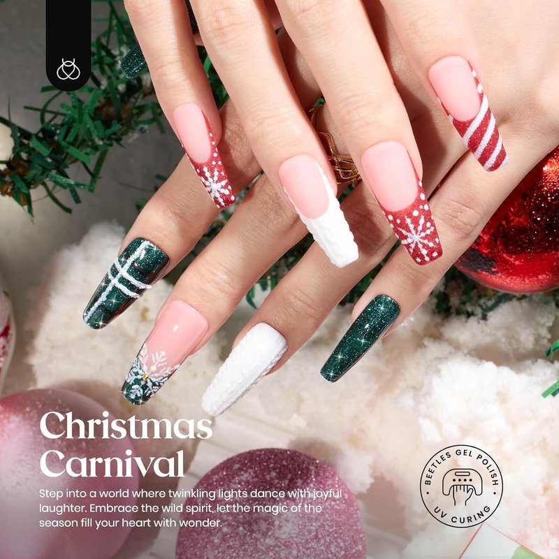 - 7 Colors Halloween Collection:White and red liner nail polish and 5 different gel nail polish colors which are glitter red green, classic gold silver and navy blue gel nail polish to DIY your nail design at home for a party Day gel polish kit.