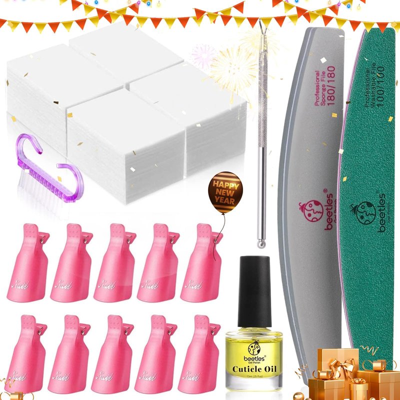 Beetles Gel Polish Remover Kit - Gel Nail Polish Remover with 450 Pcs Lint Free Nail Wipes/10 Pcs Nail Polish Remover Clips/Cuticle Oil/Cuticle Pusher/Nail File for Fingernail and Toenail