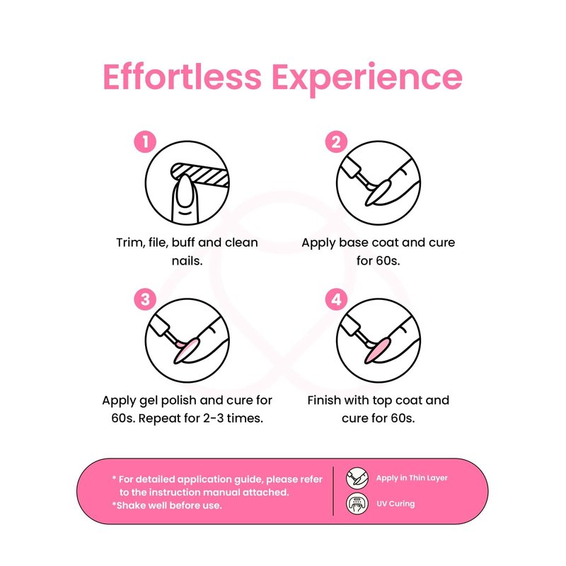 - Speed Curing with LED Nail Lamp: The gel nail polish kit need to be cured under LED light. Base and Top coat required. Average for LED light 60-120 secs.