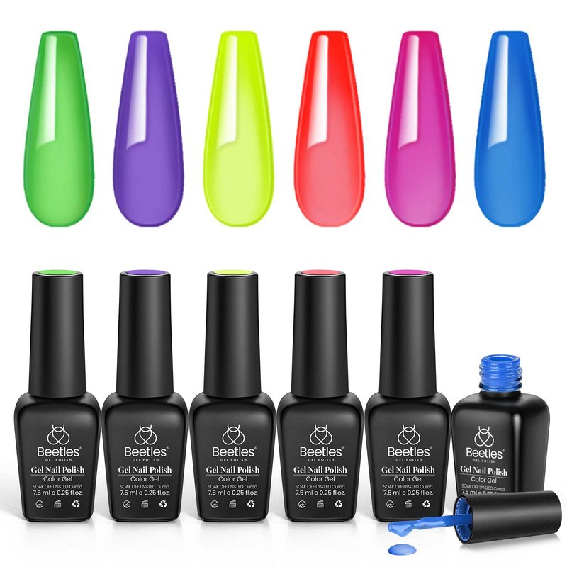 Beetles Jelly Crystal Gel Nail Polish Set 6pcs Colors Blue Red Purple Rainbow Neon Yellow Green Orange Gel Polish Kit Uv LED Dryer Cured See Through Spring Summer Nail Trend Gel Nail Art Kit