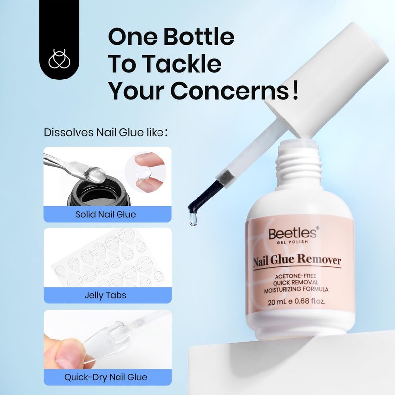 - ✨Gentle False Nail Remove -- Beetles nail glue remover is low odor. With a fine precision brush applicator in the bottle, it's easy and convenient to remove the glue on nails, reducing damage to the nail and edge skin.