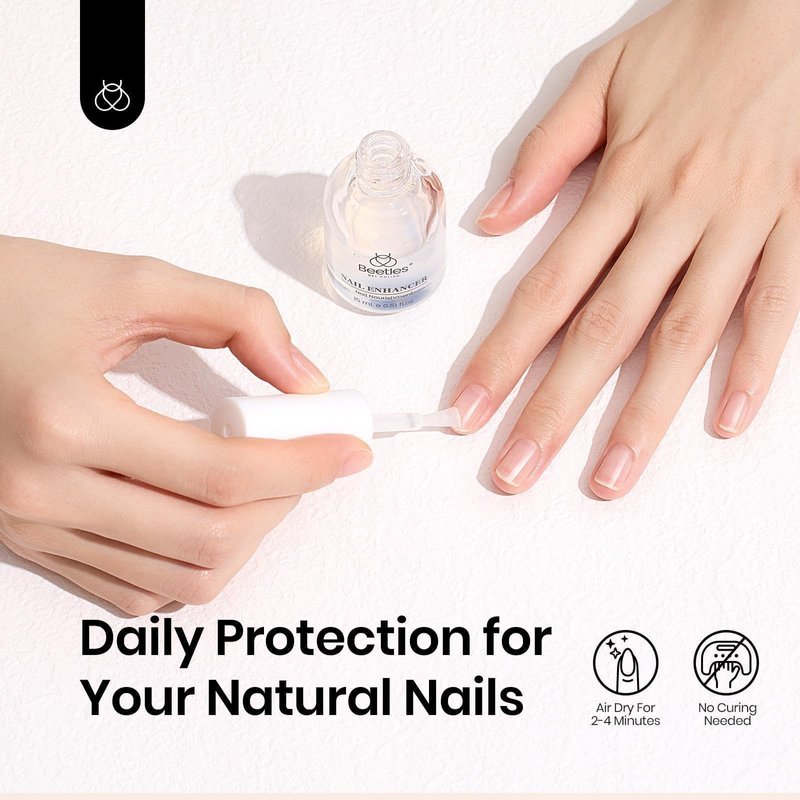 - 【Upgraded Water-based Nail Strengthen】Enhance Your Nails in 1 Week. Beetles Nail Strengthener Added vitamin B7 and natural plant extracts and nutrients. Increases circulation to the nail bed, stimulates new growth, strengthens soft nails, and accelerates nail repair and strengthening. Tips: It is recommended that you do not touch water within two hours of using it, and then wear gloves before touching hot water.
