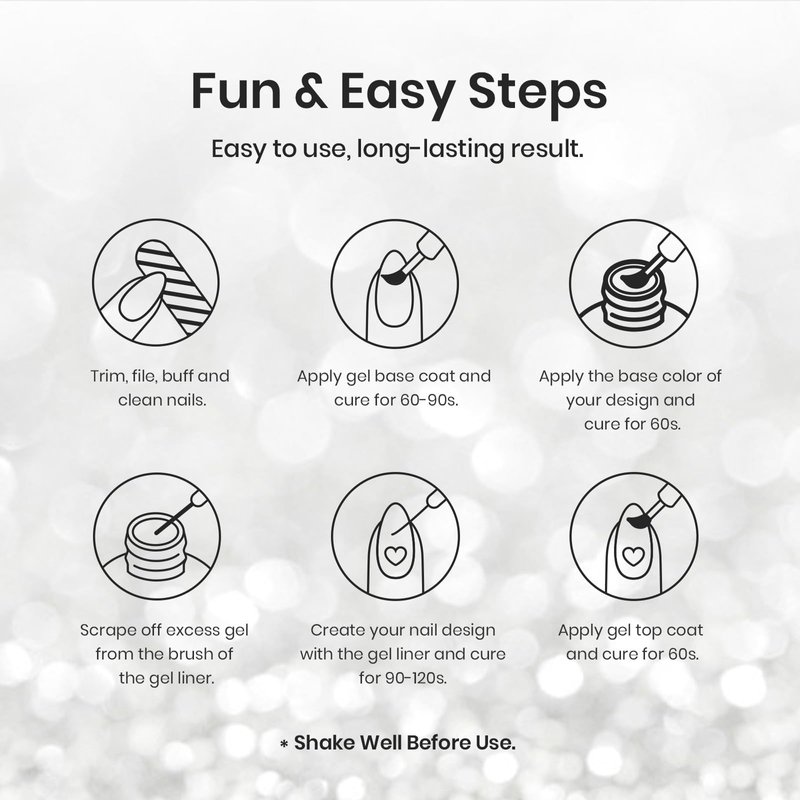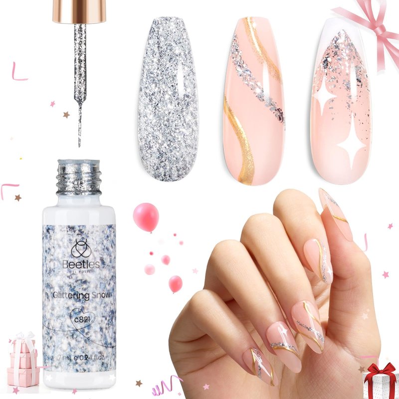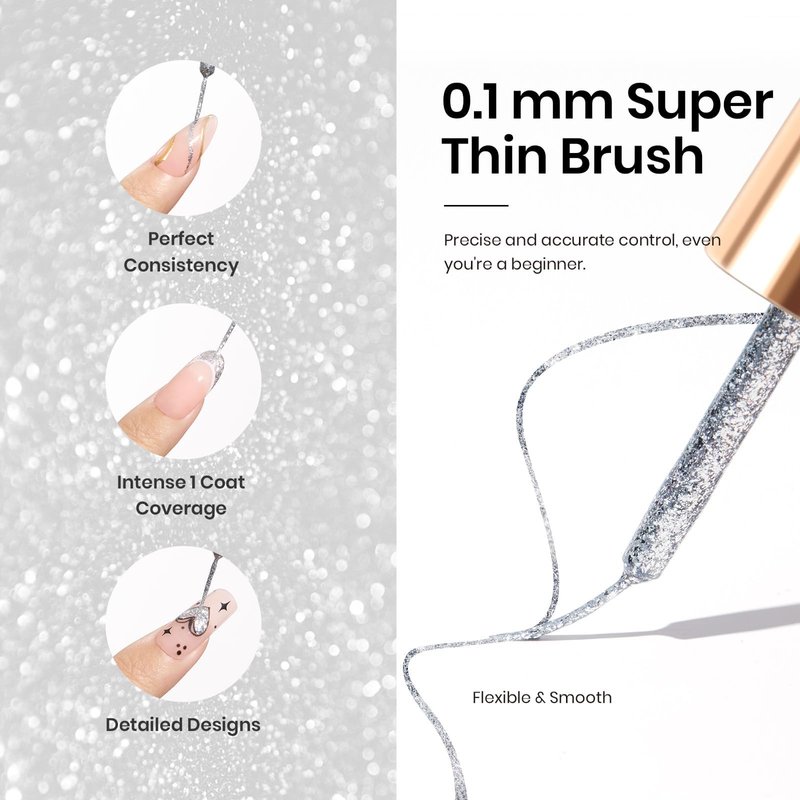 - 【Easy Application】: Beetles glitter gel polish liner nail art is highly pigmented. 1-2 layers is enough for color painting.Suitable for silver french tips, chorme nail art, silver outline, unique nail art, 3D nail charms, silver glitter nails, aura nails, ombre nail designs, silver star nails, snowflake nails and so on.