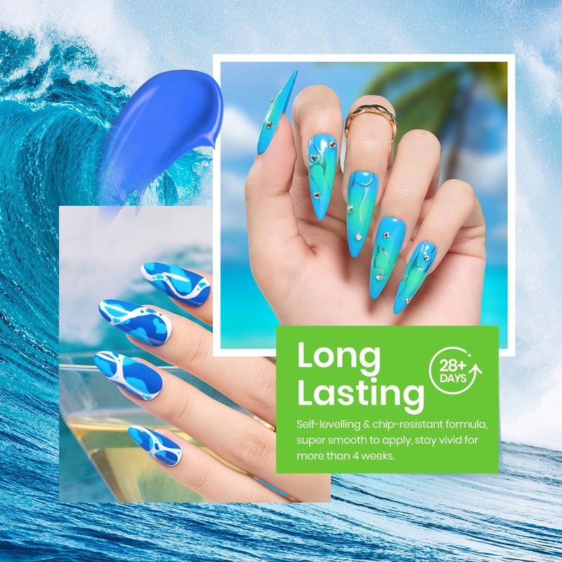- 【Personal Style】The special thread gel polish outlines the unique wavy lines, as if you are in the turbulent blue waves; And the delicate glitter gel polish is like sparkling water to add life to your creations. Let you really feel the charm of the waves in the graffiti and create your own charming coastline. The set comes with color card sticker and double-sided tape.