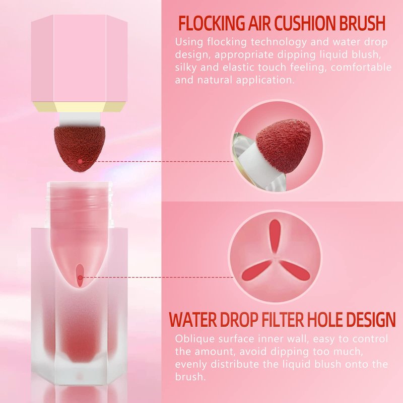 - 【Matte Velvet Texture】Our cream liquid blush features a unique matte velvet texture, which helps you effortlessly create a charming misty blush look. This texture makes the blush more lightweight, natural, and easy to apply and blend, resulting in a perfect and long-lasting makeup. Whether it's for everyday or special occasions, our liquid blush can bring you a fresh, natural and beautiful feeling.