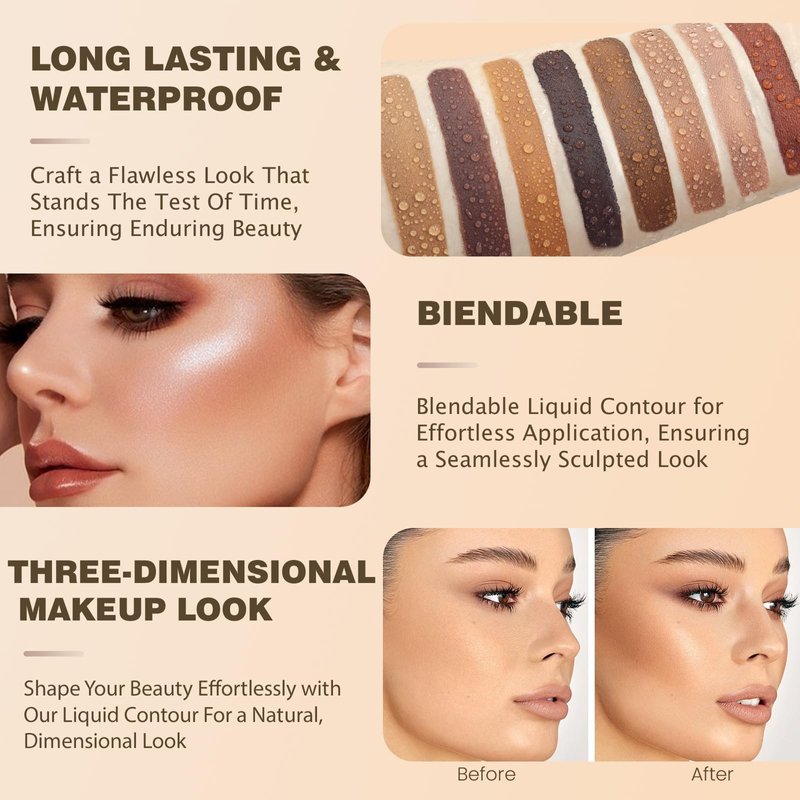 - 【Effortless Definition, Perfect Beauty】Effortlessly define and enhance your facial contours with our liquid cream contour. Smoothly apply it to areas such as the nose, forehead, collarbone, or hairline, adding shading and seamlessly blending for a stunning 3D effect.