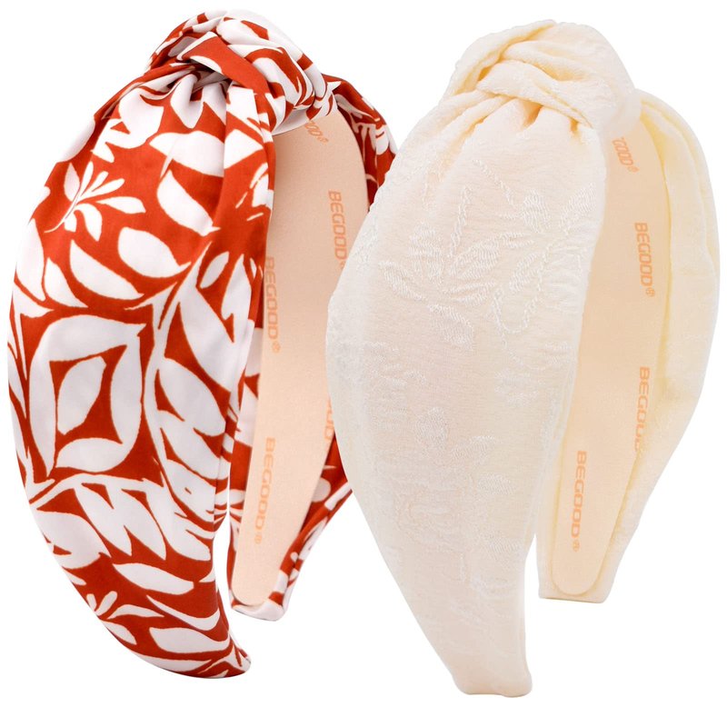 BEGOOD Headbands for Women Jacquard Womens Knotted Headband Tropical Wide Head Bands Fashion Top Knot Hairbands Girls Turban Headbands Hair Accessories 2Pcs