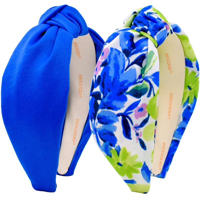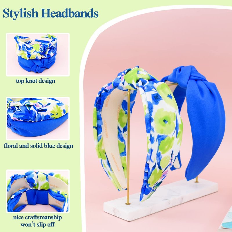 BEGOOD Headbands for Women Knotted Wide Headband Blue Headband Tropical Head Bands Fashion Hairbands for Women's Hair Designer Summer Headbands Hair Accessories for Girls 2Pcs