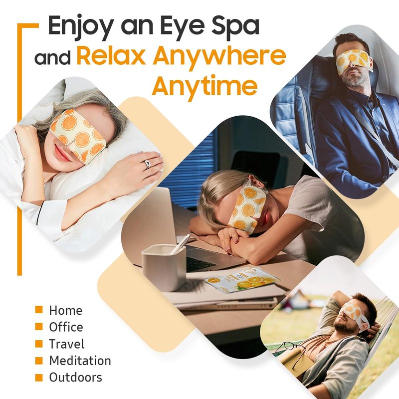 BeHoomi Steam Eye Mask, 20 Packs Heated Eye Mask Warm Compress for Eyes, Disposable Self Heating Eye Mask for Sleep, Spa, Travel Essentials & Relaxation Gifts for Women, Men (Sweet Orange)