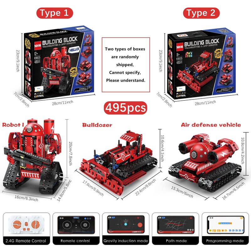 - √ 【5-in-1 Models Building Sets】This technique building set is made of ABS safety material and has 495 parts. Children can build 5 different models: Tracked, Robot, Bulldozer, Tank and so on. It can help children develop hands-on skills, problem-solving skills, enhance logical thinking and confidence, as well as teamwork skills. Excellent STEM kits for children age 8-10.