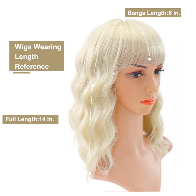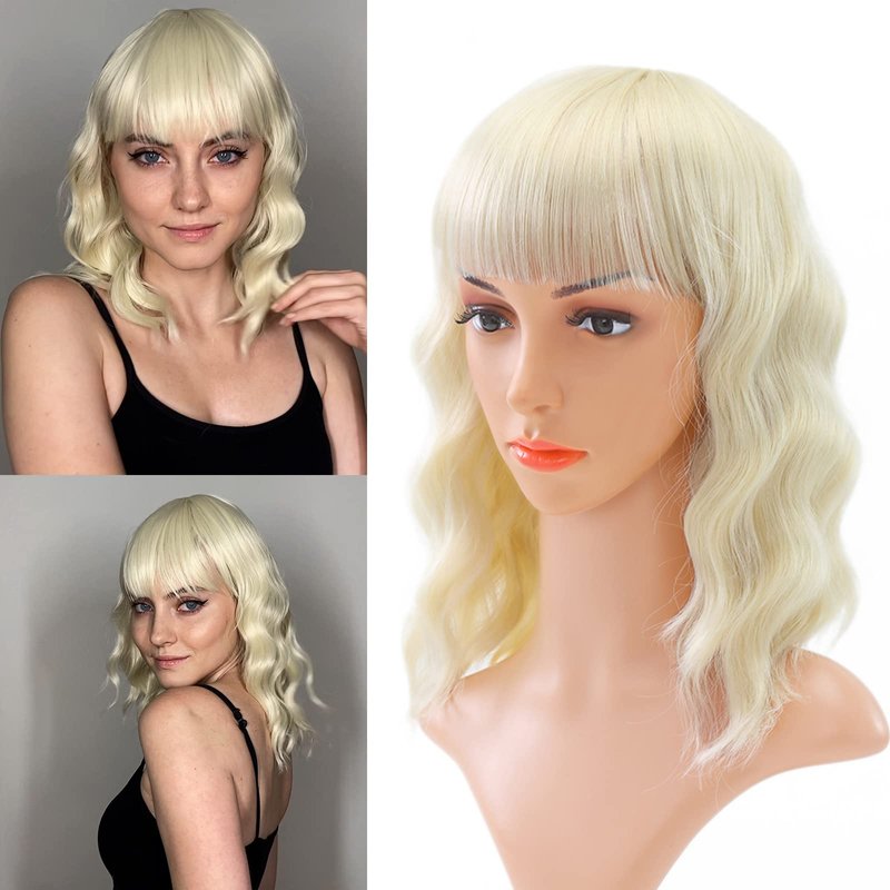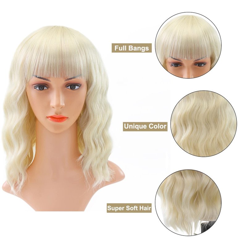 - 【Distinctive Stylish New Look】This blonde wig is a soft, messy and modern bob with full bangs , the bangs and distinctive waves bring a modern flair to the classic bob style that it makes you more distinctive like makeup, and you deserve to have it