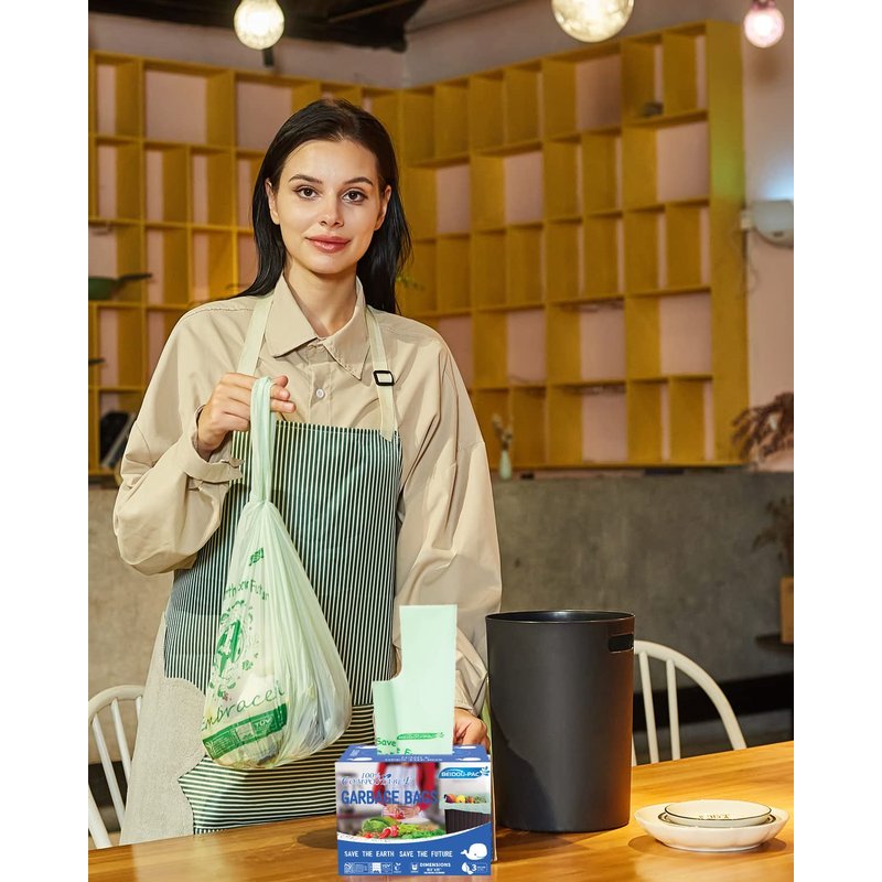- [MORE RESPONSIBLE CHOICE] -- It has never been easier to do your part and contribute to a better environment with compostable garbage bags. Biodegradable bags wastebasket liners are perfect for kitchen waste, table food scrap, daily trash and outdoor dinner parties or office, home, bathroom, bedroom, car, dog Pet. We are all responsible for saving the earth and feel less guilty anymore. It's an excellent replacement for plastic trash bags!