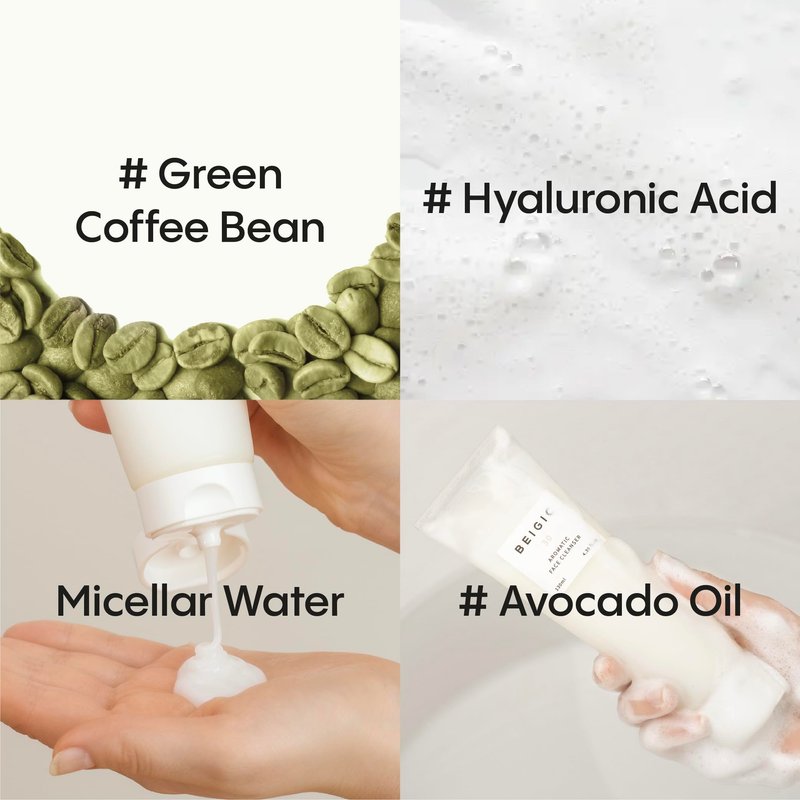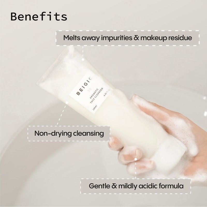 BEIGIC Aromatic Face Cleanser |130ml / 4.39 fl.oz |Hyaluronic Acid & Micellar Water included | Vegan | Cruelty-Free | Korean Skincare
