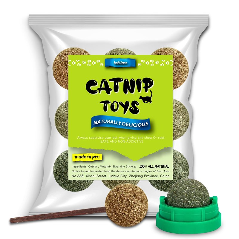 - Product list: 8 Catnip Balls. 1 base support . 1 Silvervine lollipop sticks.