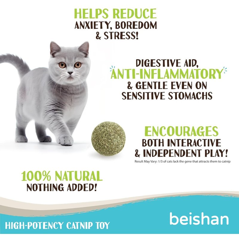 beishan Catnip Balls, 8 ct - Cat Ball Toy - Kitten Toys - Cat Nip Ball Cat Toy - Cat Lick Ball - Cat Nip Cat Toys - Natural Catnip Ball for Cats of All Breeds, Green