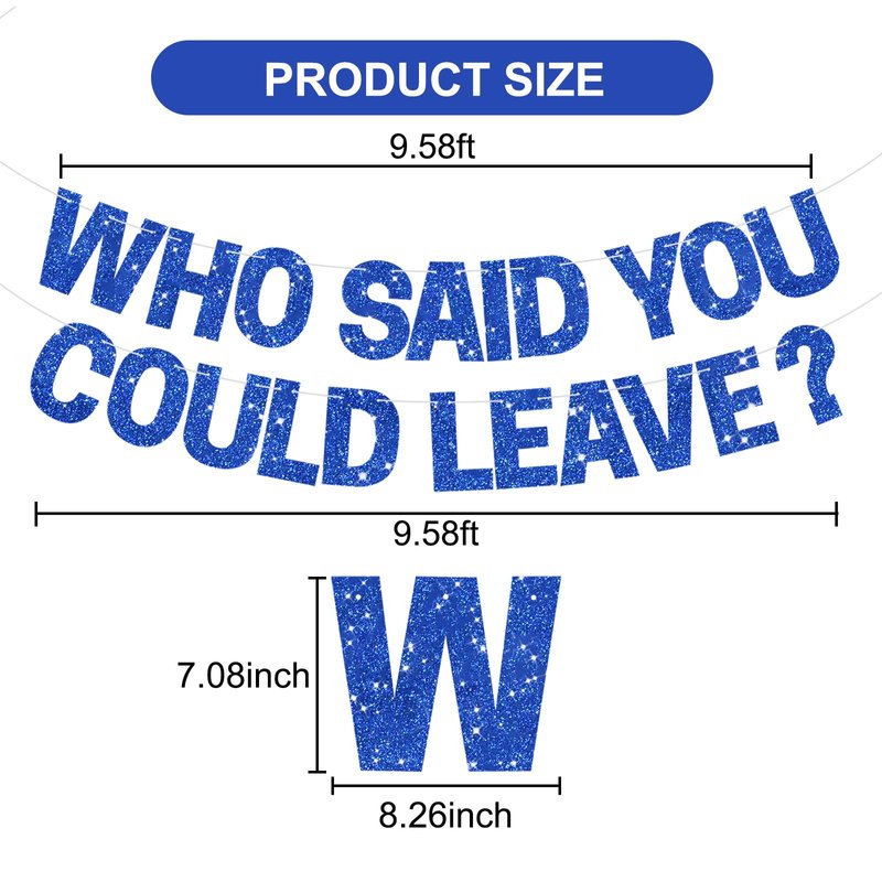 - 【Multiple applications】You can hang it on the fireplaces, walls, branch, ceiling or table to fit your party decoration;Also you can use it as a photo backdrop on farewell party, retirement party,going away party,graduation party or any other theme party. Glitter Who Said You Could Leave Banner