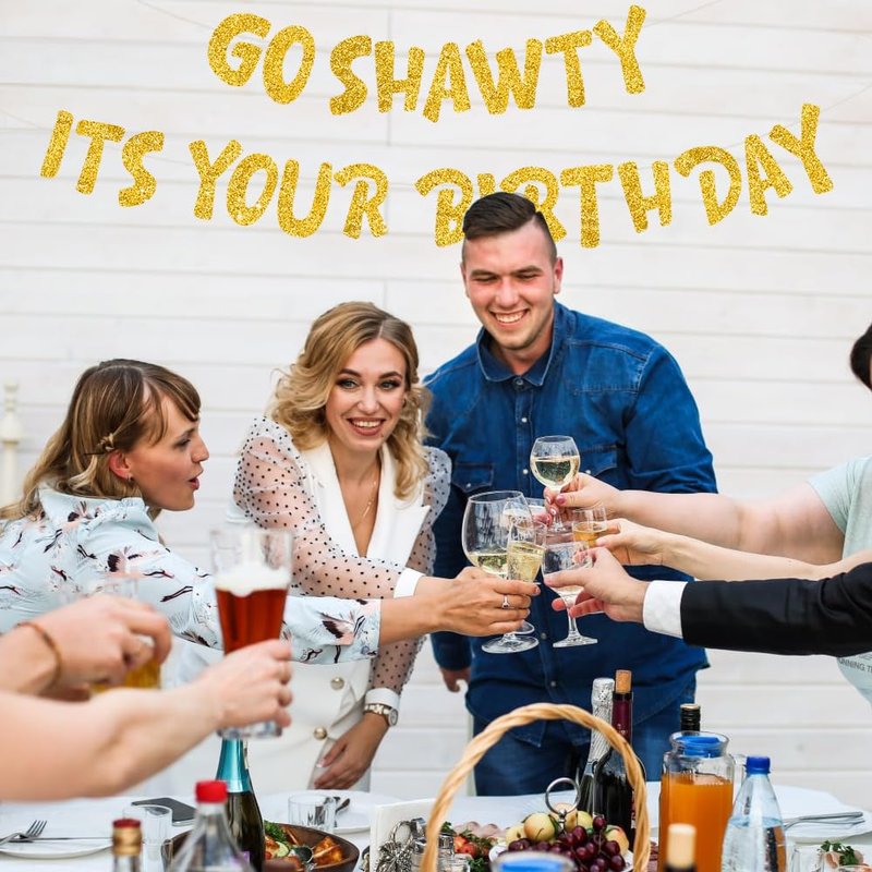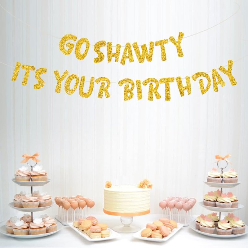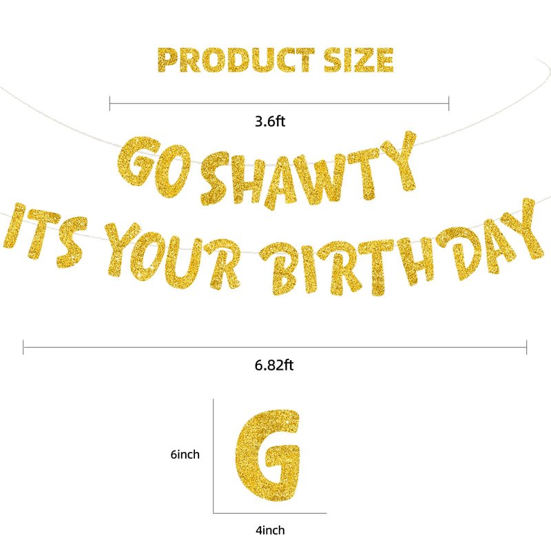 BEISHIDA Gold Go Shawty It's Your Birthday Banner,NO DIY,Hip Hop Theme Happy Birthday Banner,21st, 30th, 40th, 50th, 60th, 70th Birthday Decorations,Birthday Party Supplies and Gifts