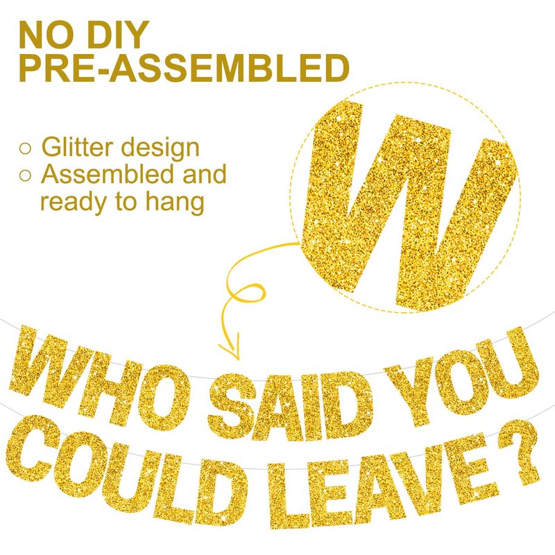 BEISHIDA Gold Who Said You Could Leave Banner,Pre-Strung Glitter retirement party decorations,going away party Sign Garland, Farewell Party Supplies, graduation banner (No DIY)